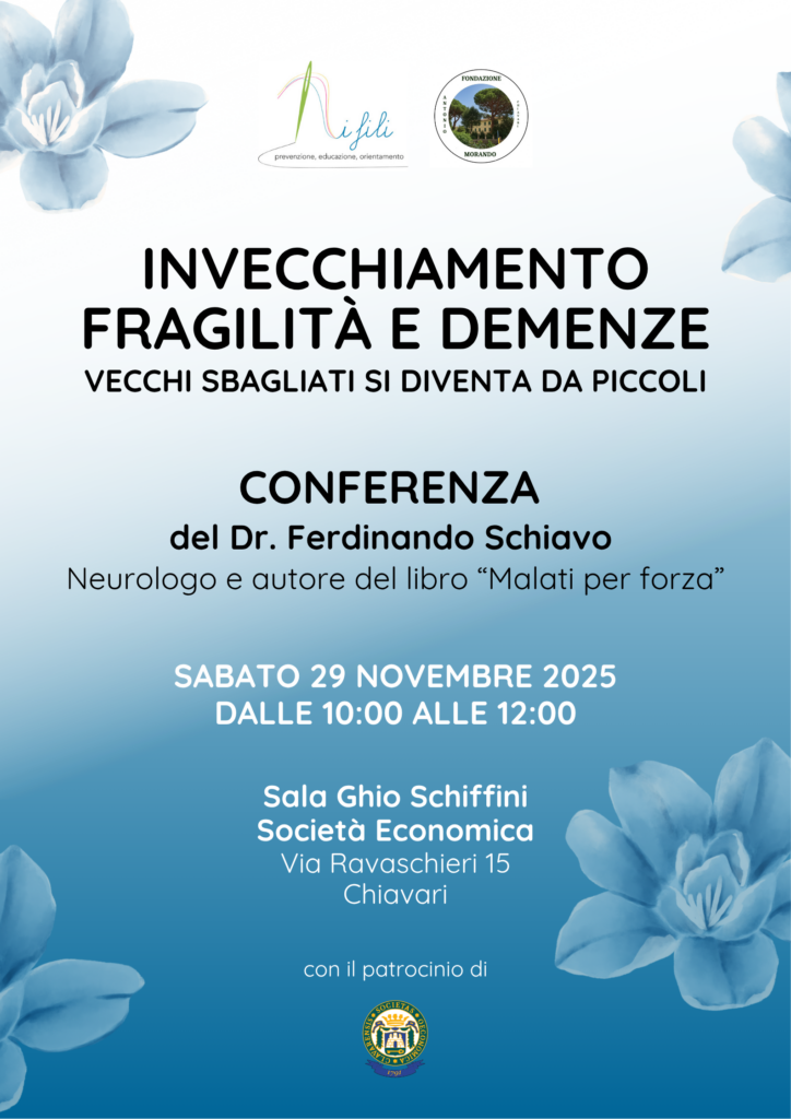 L’ evento è organizzato dall’ a.p.s. I Fili in collaborazione con la Fondazione Antonio Morando e si terrà in Chiavari, Sala Ghio Schiffini della Società Economica sabato 29 novembre 2025.